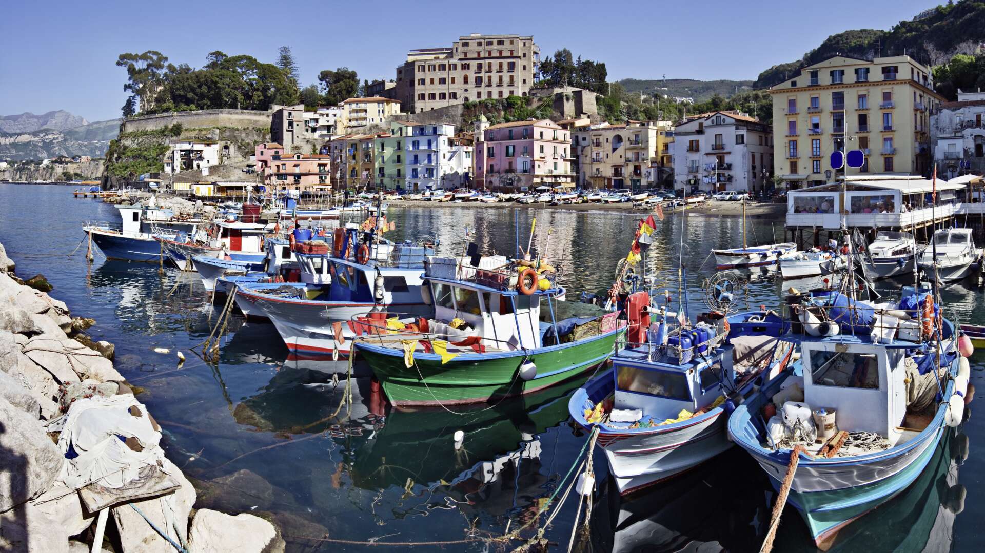 Take to the seas on your traditional Gozzo Sorrentino and embark on a breathtaking adventure from Ischia to Procida. Home to a bevy of sandy stretches including the longest on the island, Maronti Beach, Ischia also plays home to the famous Green Cave, a peppering of hot springs, historical sites galore and some seriously stellar cuisine. Be sure to box everything off before relishing a rejuvenating ocean plunge at our designated swim stop, where you’ll also have the chance to enjoy a spot of snorkelling. Now, it’s time to witness the age-old walls of the Aragonese Castle. Uncover your inner historian before proceeding to the pastel-coloured homes of Procida to admire the treasure trove of thrills and spills that await you. From the little promontory of Vivara and the former prison of Palazzo d'Avalos to the bay of Chiaozza, this postcard-perfect stop packs plenty in. All that adventuring will leave you yearning for some downtime, and your journey back to Sorrento offers just the ticket. Load up on sips and snacks and make the most of that final limoncello tasting before heading back and reminiscing on the most dreamy day.