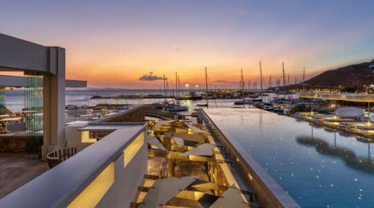 This chic design hotel brings a touch of 1960s glamour to Mykonos Town’s waterfront.