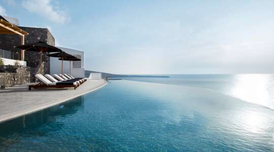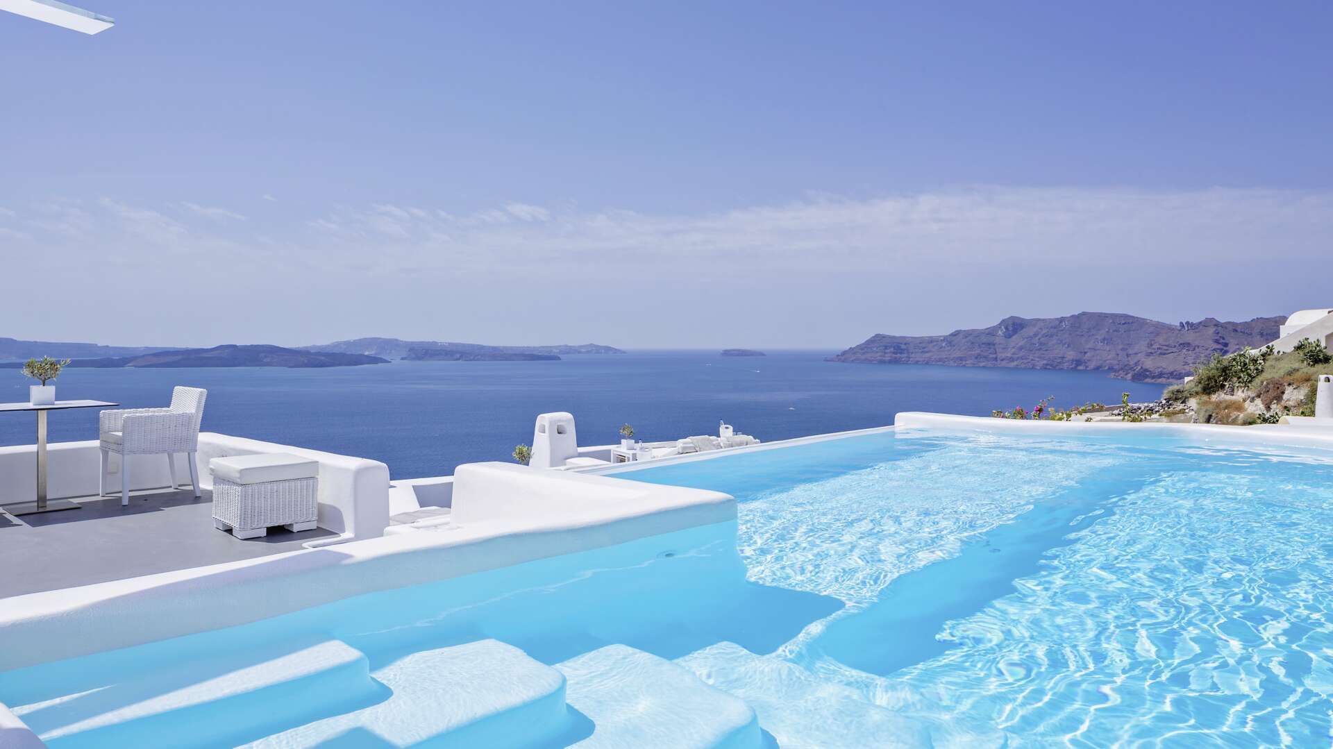 A sugar-white coastal stunner carved into volcanic rock, where every room comes with a private pool.
